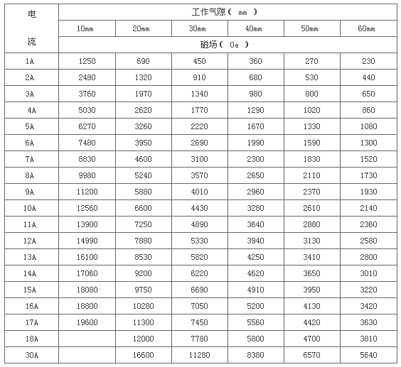 * 剩 磁:≤10mT, 工作氣隙10mm時