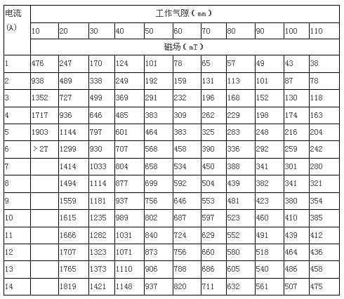 3.5 剩 磁:≤12mT, 工作氣隙10mm時(shí)